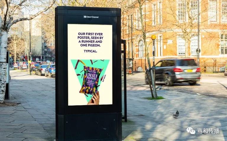 正是在这些信息的引导下,客户更能客观地了解实际情况,在受疫情影响人流减少但没有归零的背景下依然可以做出正确的户外投放决策,让品牌在哪怕危机发生之时仍和消费者有持续不断的沟通。这可以让品牌在同等甚至低于平常预算的条件下,取得相较以往更高的投资回报。如某食品(见下图)在疫情期间坚持投放户外,使用的文案非常幽默,“也许我们应该投放电视广告”、“这是个只能被跑步者和鸽子看到的广告”等等,让人忍俊不禁,但又让人过目不忘。根据英国户外广告行业对疫情期间投放户外的65个品牌的集中调研,发现顾客对这些品牌的广告回忆度与往常相比平均提升了51%,购买意向也也增加了16%,可见基于有效信息采取了正确行动的品牌,相较其它品牌收获会更多。